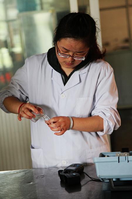 圖為供水公司水質(zhì)化驗員對學校內(nèi)管網(wǎng)水進行現(xiàn)場檢測化驗