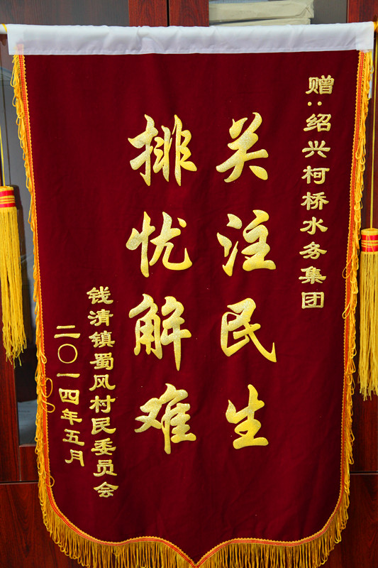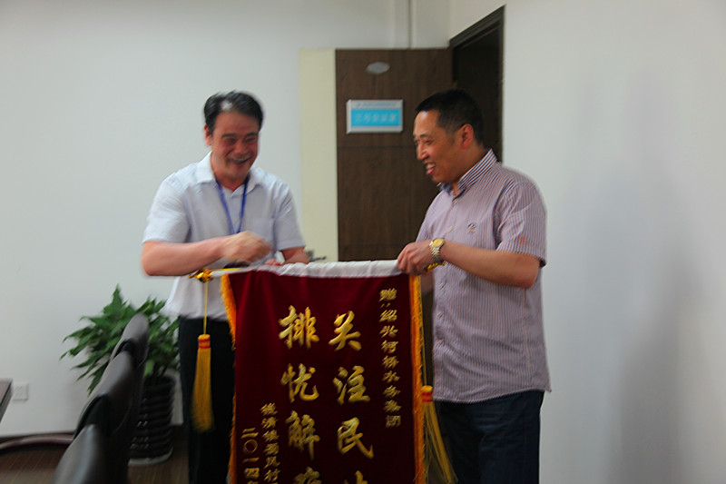 5月27日下午,錢清鎮蜀風村徐萬銘書記專程來到集團公司,送來一面“關注民生,排憂解難”的錦旗,感謝集團公司幫助他們解決困擾多年的夏季高峰期間供水低壓“老大難”問題。