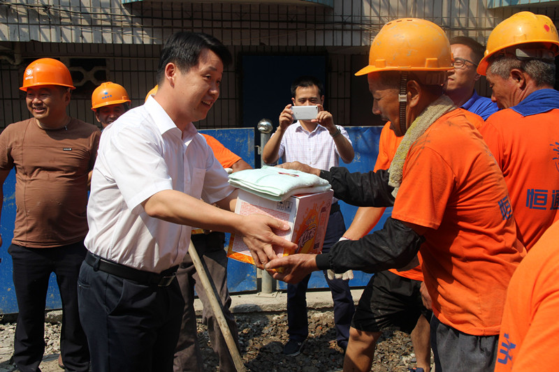 在工程現(xiàn)場(chǎng),馬焉軍向施工人員送上了飲料、毛巾等防暑降溫物品,詳細(xì)了解了工程進(jìn)展和高溫防護(hù)措施,詢問(wèn)了施工人員的作息時(shí)間,對(duì)大家高溫天氣堅(jiān)守崗位、辛苦勞動(dòng)的精神表示高度贊揚(yáng),并反復(fù)叮囑現(xiàn)場(chǎng)人員注意身體、勞逸結(jié)合、防暑降溫。這次慰問(wèn)活動(dòng)讓工程一線的作業(yè)人員實(shí)實(shí)在在地感受到了上級(jí)領(lǐng)導(dǎo)的關(guān)愛(ài)之情。
